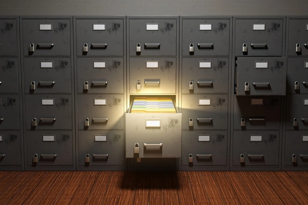 Locked file cabinet used for document security.